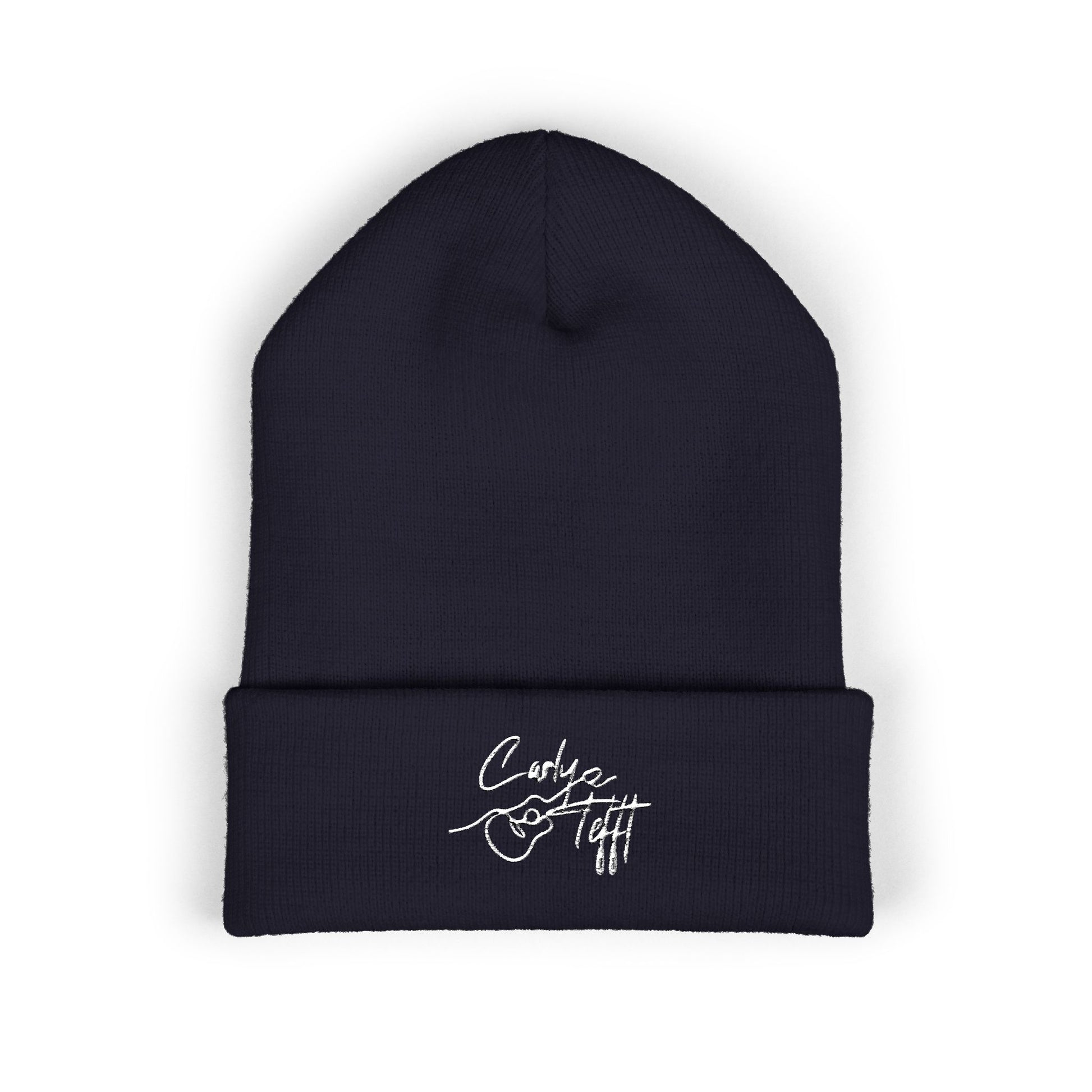 This cuffed beanie brings quiet confidence to cold mornings. The classic knit folds into a clean 12" cuff that frames the embroidered Carly Tefft logo—simple, textured, and effortlessly cool. Made from soft, hypoallergenic turbo acrylic, it keeps its shape and warmth without the itch, becoming the piece you grab for coffee runs, late-night drives, or layering up before a show. It pairs seamlessly with denim, flannels, or oversized coats, fitting into a wardrobe that values comfort, subtle detail, and a bit of edge. The stitched logo reads like a signature—personal, understated, and ready to wear in every season of your story.